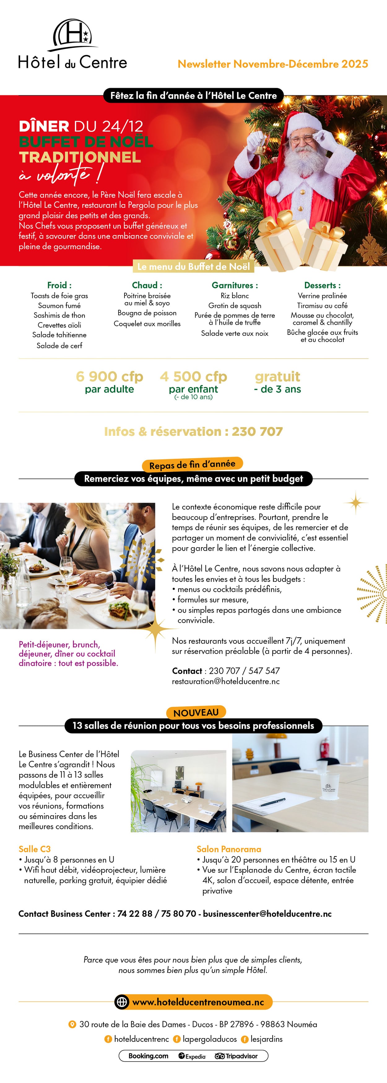 InformationsL’Hôtel du Centre, c’est aussi un espace affaires spécialement conçu et aménagé pour vos impératifs professionnels à Nouméa en Nouvelle-Calédonie.